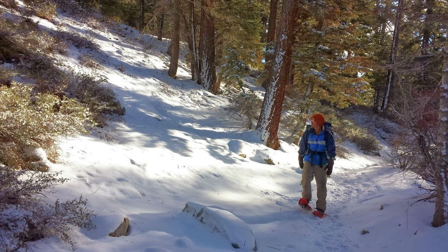 We broke camp very quickly the next morning, as 15 degrees isn't super comfortable to stand around in. Snow wasn't super deep and we made good time back down the mountain with our snowshoes on. Halfway back down we ran into a dude hiking up with very little gear. "You don't happen to be the owner of a green tent up at High Creek?" I asked.